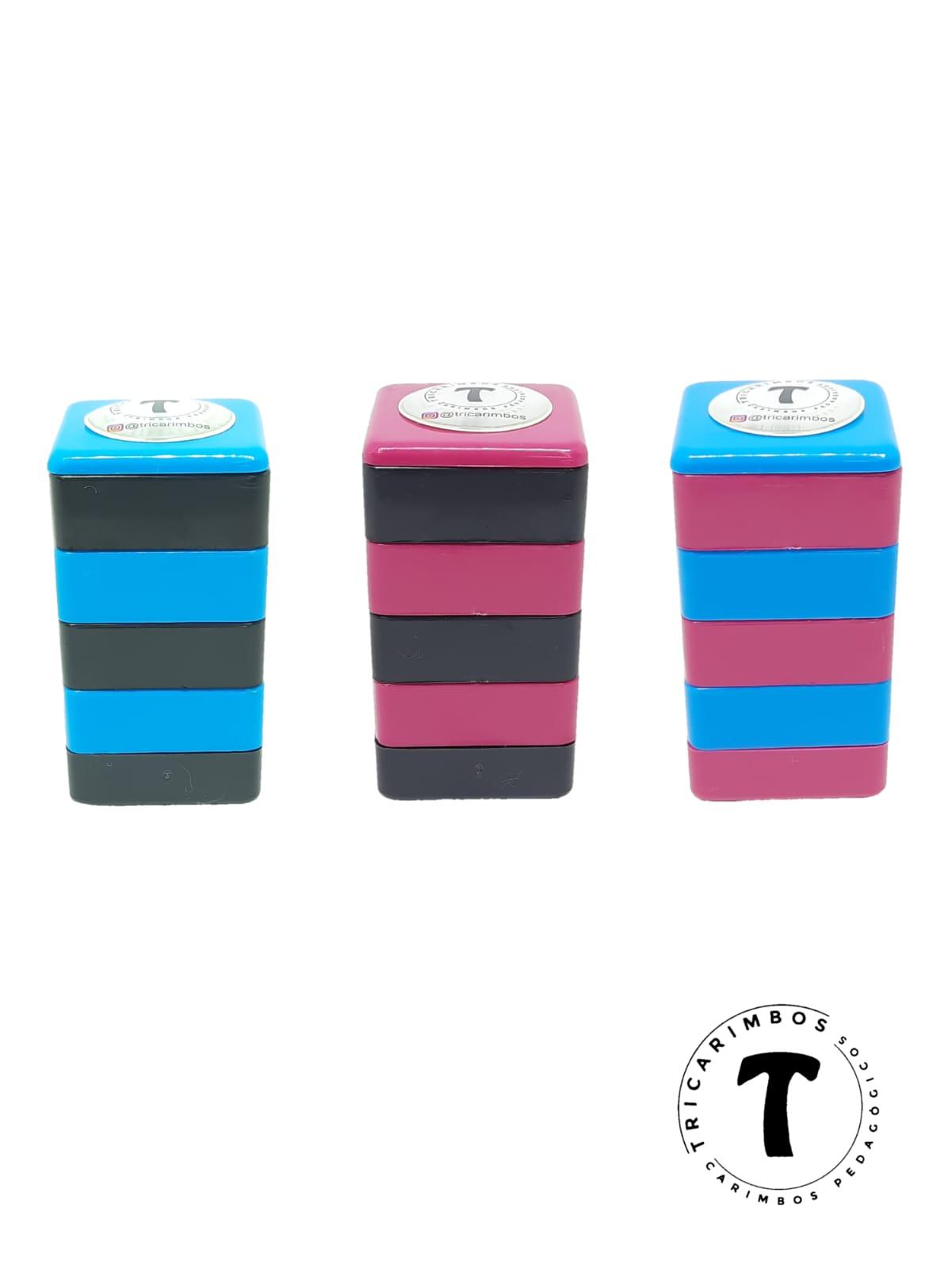 IMPORTANTE: Escolha a cor das caixinhas e a quantidade de carimbos para iniciar sua compra no catálogo de imagens. Não achou o que procurava? Crie seus carimbos agora mesmo! Escolha a quantidade de carimbos tamanho 2x2, selecione uma imagem e quando abrir a caixa de texto, escreva o que deseja para cada figura. 20 caracteres por linha e até 3 linhas com carimbos. P.S: CASO QUEIRA SEU NOME FAVOR ESCREVER NA CAIXA TEXTO. Os Tricarimbos não usam almofadas, são pré-entintados com tinta aromatizada (não utilize outros tipos de tinta). Adquira a tinta para aproveitar o valor do frete. PRAZO DE CONFECÇÃO DE ATÉ 10 DIAS ÚTEIS + o prazo dos Correios. As cores podem variar um pouco conforme a tela do computador ou celular.